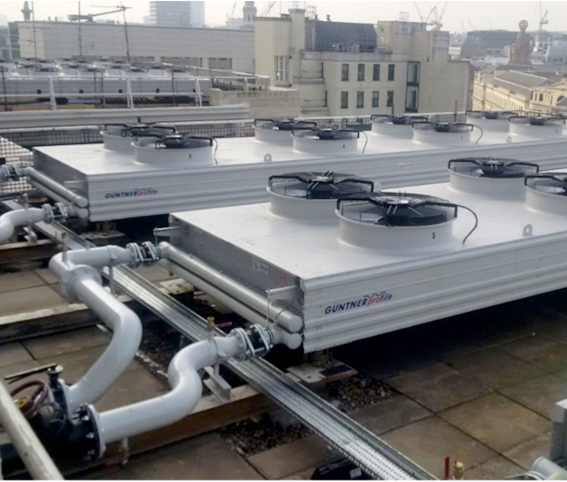 The existing DAC's were stripped out and removed from site together with connecting pipework from main condense water flow and return header and BMS panel. 11 new DAC's were then supplied and installed in two phases. These were mobile craned onto the roof along with all new prefabricated pipework complete with new strainers, DRV's and butterfly isolation valves.